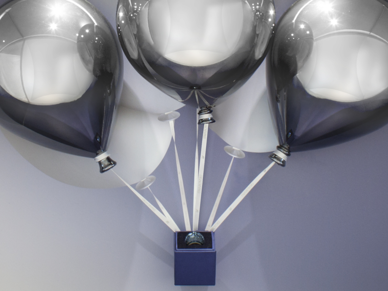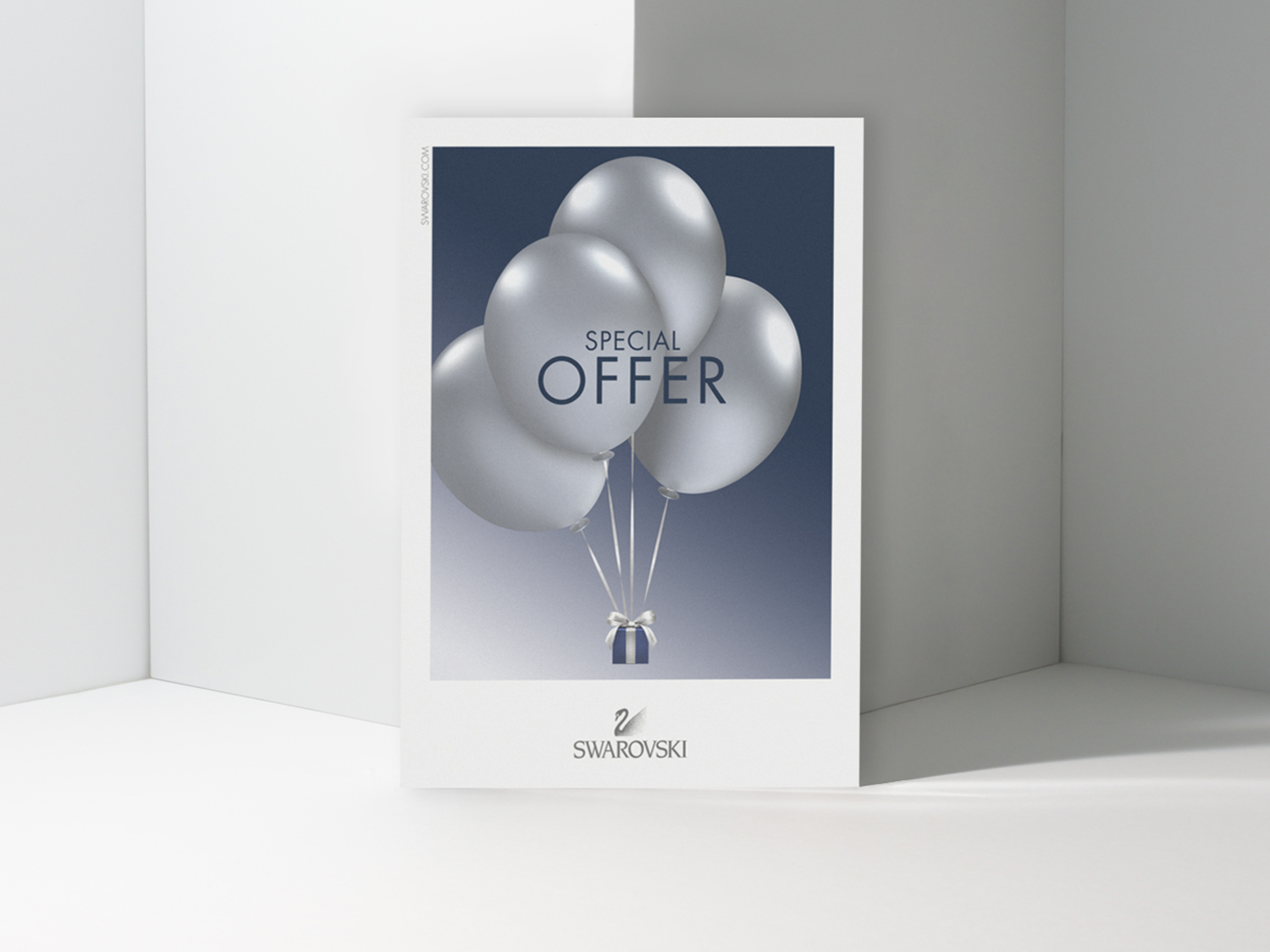 Die Swarovski Outlet-Kampagne 2015 verzaubert durch ein leichtes und elegantes Design, das silberne, glänzende Ballons vor einem blauen Hintergrund präsentiert. Dieses Key Visual symbolisiert die Freude und Leichtigkeit attraktiver Angebote und zieht sich weltweit durch alle Kanäle – von der Website bis hin zu den Schaufenstern der Outlets.